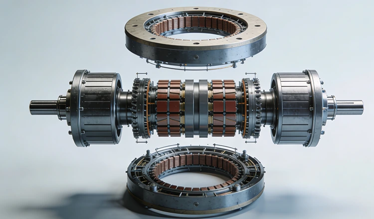 Fastgør permanent magnetpoler og bærer vekslende belastninger fra højhastigheds start-stop og hyppig kommutering, hvilket sikrer strukturel stivhed og geometrisk nøjagtighed under drift og forhindrer komponentdeformation ved høje hastigheder.
